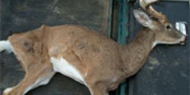 The chronic wasting disease is a contagious, neurological disease that affects deer, elk, and moose. It causes a degeneration of the brain resulting in emaciation (abnormally thin), abnormal behavior, loss of bodily functions and death. CWD is fatal; once an animal is infected there is no recovery or cure. To date, there is no evidence that CWD can be naturally transmitted to humans or other animals. It is caused by a normal protein, called a prion, that folds incorrectly and can infect other deer. It is transmitted through direct animal to animal contact or by contact with saliva, urine, feces, blood, carcass parts of an infected animal or infected soil. Prions are extremely resistant in the environment and can stay infectious for years.