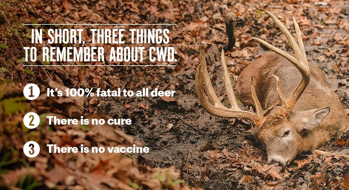 The best way to manage CWD is to prevent its introduction into new areas and limit its spread. To date, CWD has persisted, spread, and increased in prevalence in nearly every area where it has been introduced. Since there is no vaccine for a prion disease like CWD, the options for managing CWD are extremely limited. The most effective strategies, by far, are those that eliminate ways CWD can travel to new areas by infected animals or infected animal parts. Ideally, there should be no animals moving from infected areas to uninfected areas. In places where CWD is present, cervid populations should be managed to reduce their potential to congregate or increase in unnaturally high numbers. Source: CWD-INFO.org